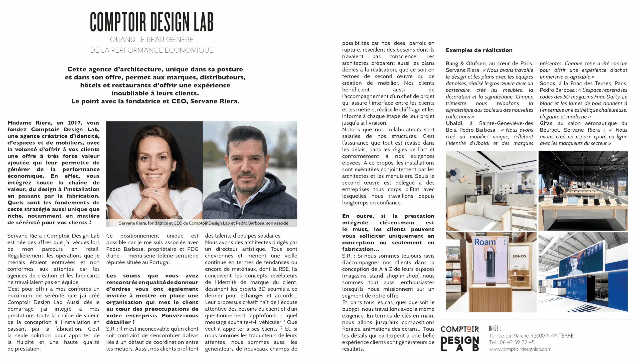 Depuis 2017, Servane Riera, fondatrice de Comptoir Design Lab, transforme les espaces de vente en offrant un service clé en main, de la conception à l’installation. Forte de son expérience chez Fnac, Virgin et Samsung, elle privilégie durabilité et digitalisation, avec une approche intégrée, sans sous-traitance, et gère une quarantaine de projets par an.