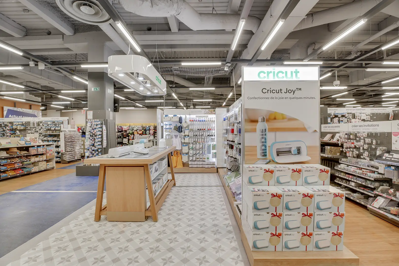 À l’occasion du lancement des nouveaux produits Cricut, nous avons conçu, fabriqué et installé un corner dédié au Cultura de La Défense.