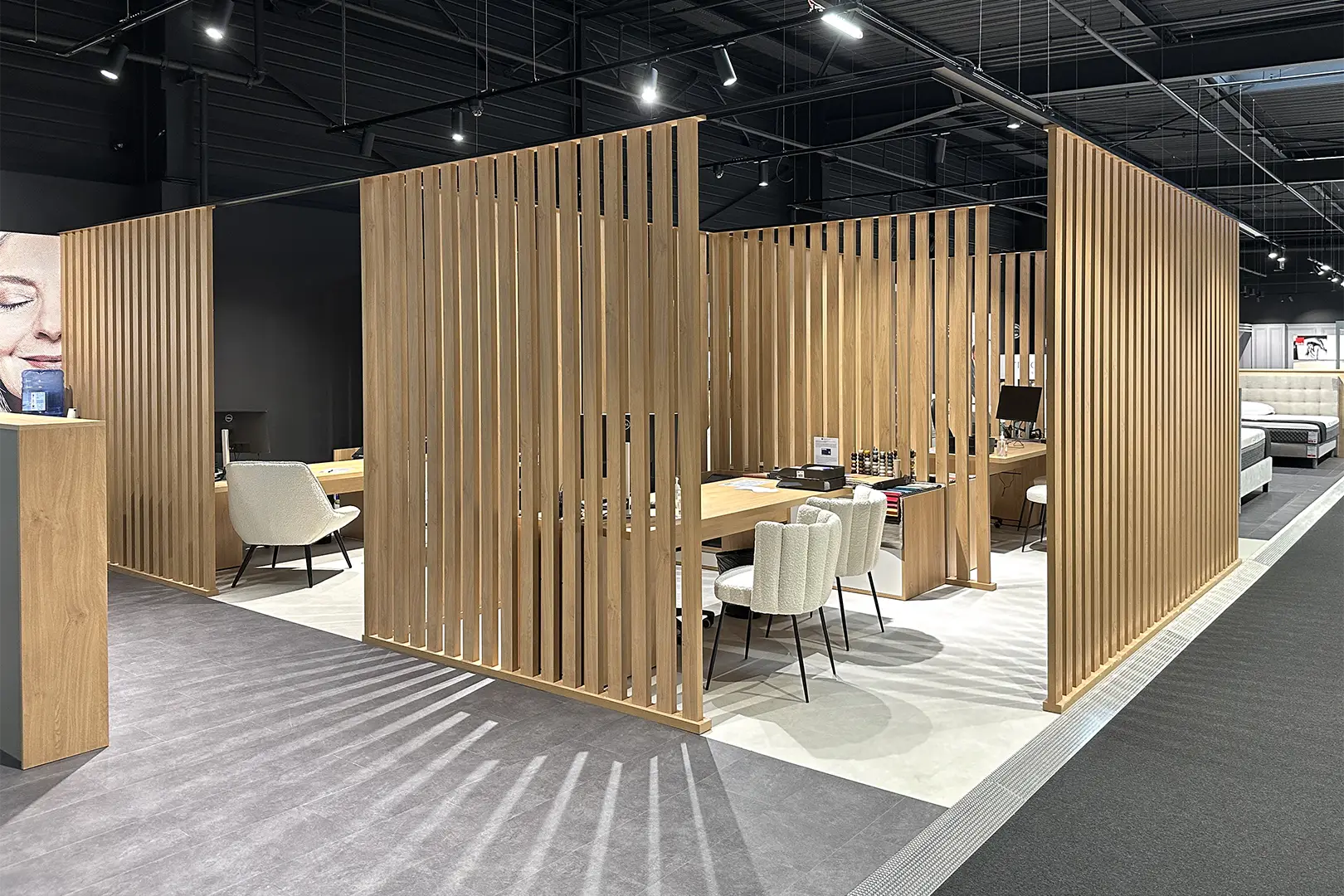 Pour l’arrivée d’Ubaldi en région parisienne, nous avons conçu et fabriqué les bureaux vendeurs de la boutique de Sainte-Geneviève-des-Bois.